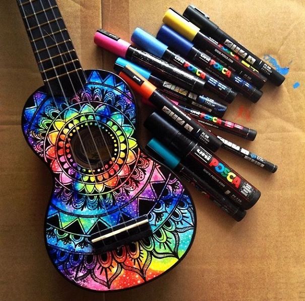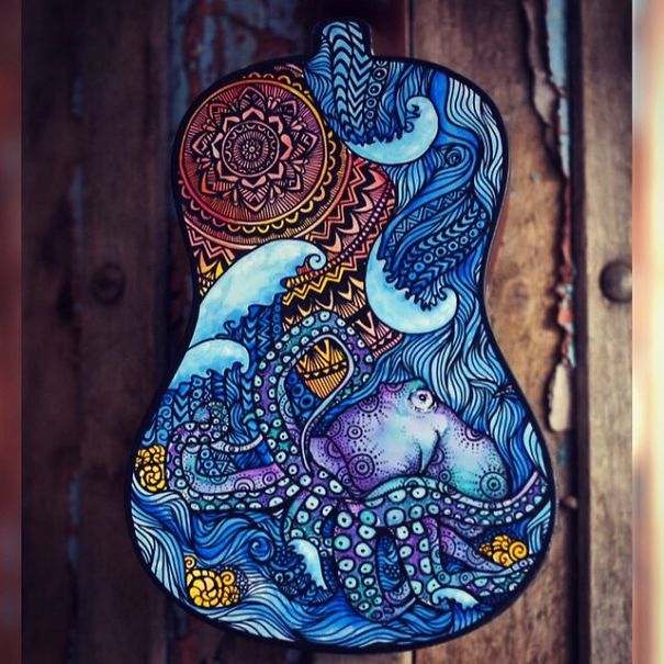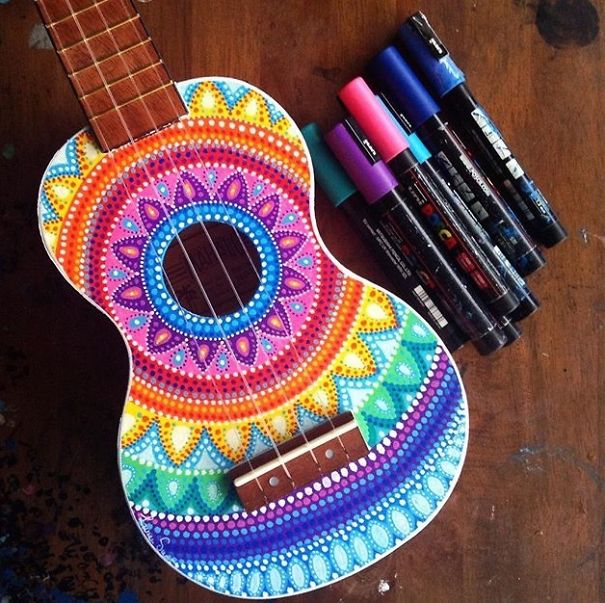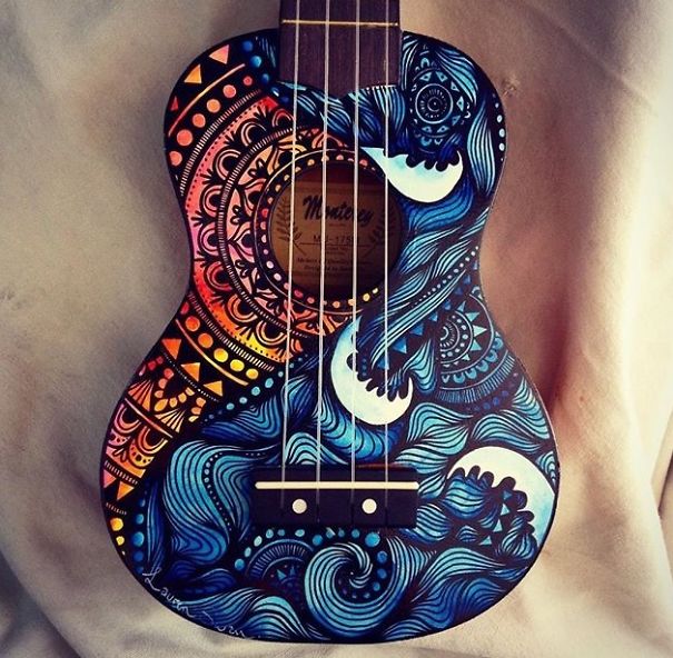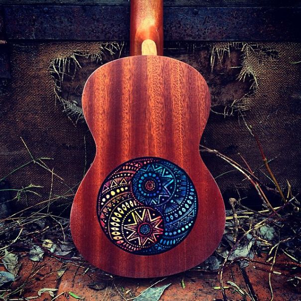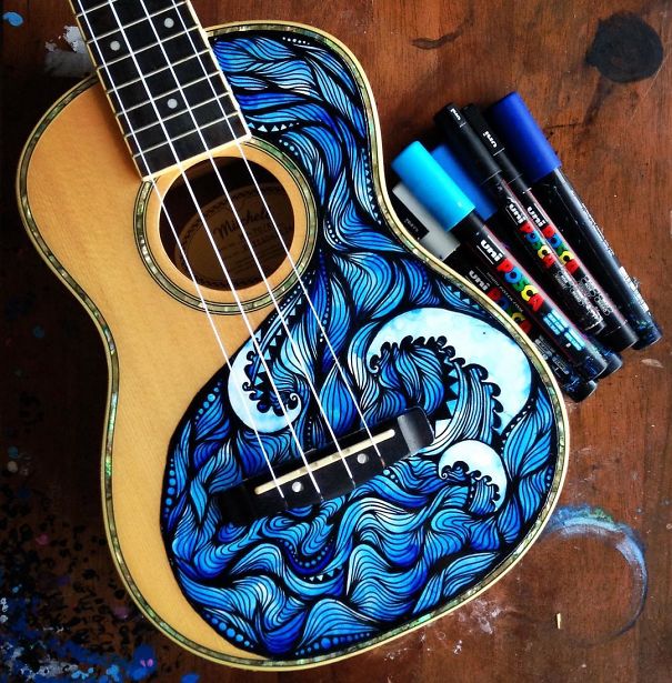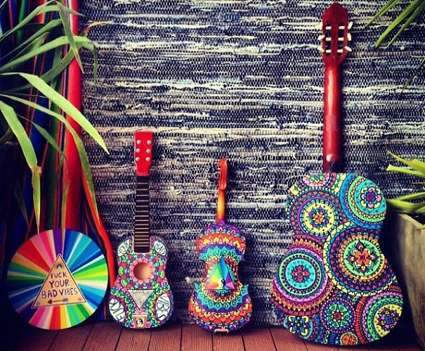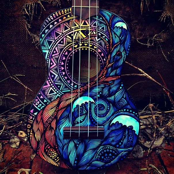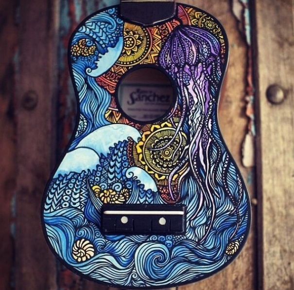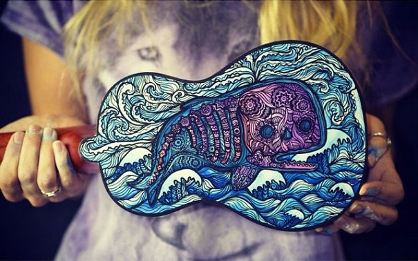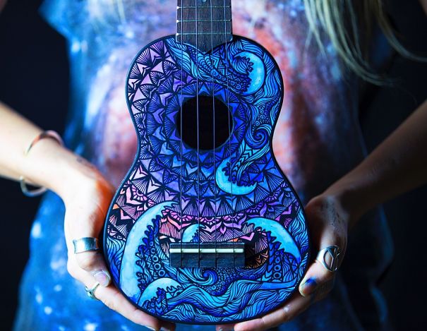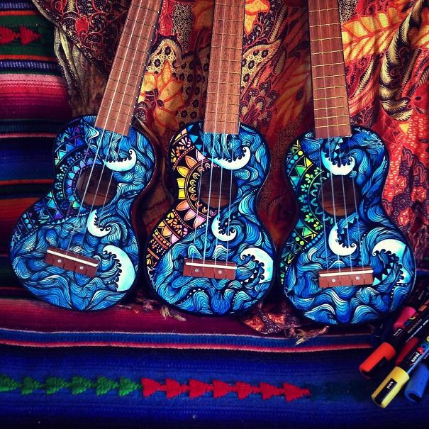 Ali ona nija sasvim običan umetnik. Salti oslikava muzičke instrumente – ukulele, daire, gitare, bubnjeve…