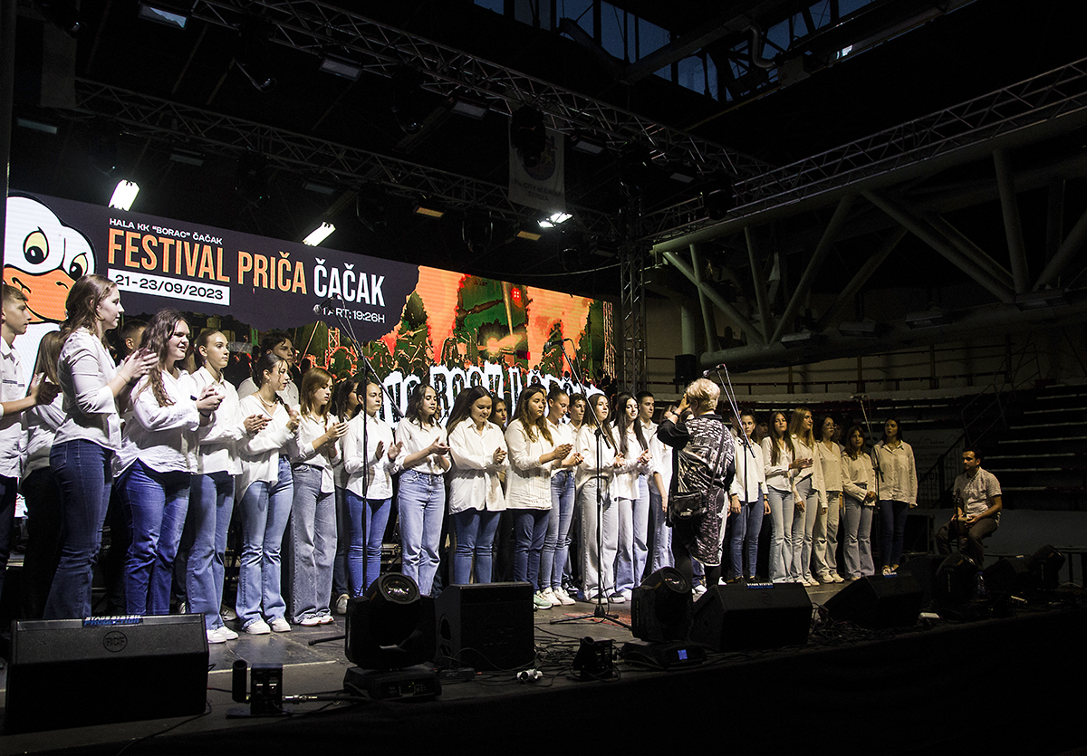 Čast da otvori ovogodišnje izdanje festivala pripala je horu Čačanske gimnazije. Uz “We Will Rock You” (Queen), “Another Brick in the Wall” (Pink Floyd), “Sve još miriše na nju” (Parni valjak)… i još nekoliko vanvremenskih rok hitova ušetali smo u novu Priču.
