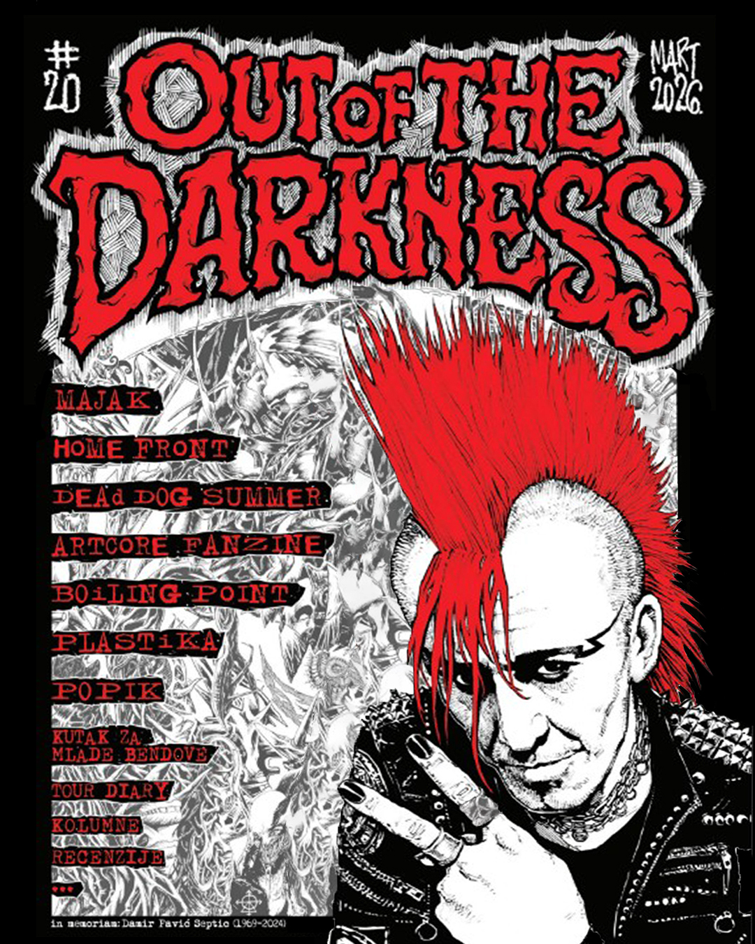 Poslednji broj, štampan na 104 strane, sadrži intervju sa Majakom (mlađi bend iz Beograda kojem je upravo ovaj fanzin objavio i ploču), sve popularnijim Home Frontom, te fanzinom Artcore koji ove godine slavi 40 godina postojanja. Stranice krase i bendovi iz Hrvatske s nedavno objavljenim izdanjima – Dead Dog Summer i Plastika. No, kako ovaj fanzin krasi sveobuhvatnost i jak ex-YU pečat, zastupljeni su i Boiling Point (kolektiv iz Kumanova zadužen za koncerte u tom malom makedonskom gradu), ali i Popik, čija je ekipa aktivno uključena u sam fanzin. Za naslovnu jubilarnog broja zaslužan je Leo iz Goblina, nekada iz benda Džukele.