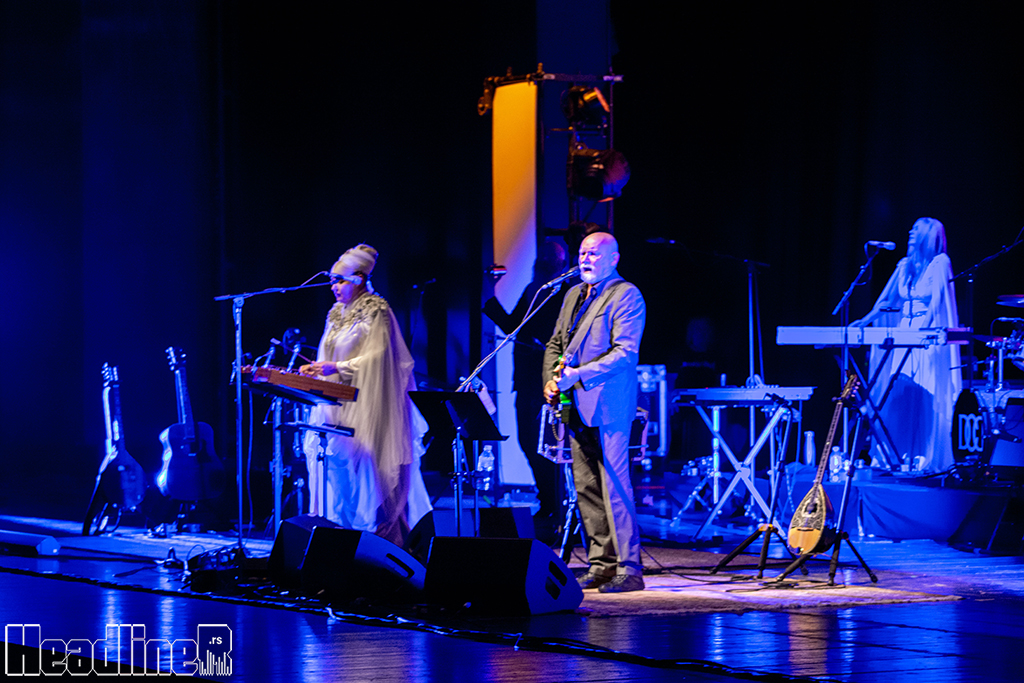 Bez ikakve posebne pompe, na scenu izlazi osmočlani bend, klavijaturistkinja i ujedno opasan prateći vokal, klavijaturista, bubnjar, basista, već pomenuti perkusionista, prateći vokal i multiinstumentalista (brat Brendana Perryja, praktično blizanac samo sa Tolstojevskom sedom bradom, zvaćemo ga Tata Brada) i naravno njih dvoje, zbog kojih srce počinje da lupa brže: elegantni Brendan Perry u sivom odelu i tamnosivoj košuji, sa goatee bradicom i obrijane glave, koji zauzima levo krilo scene, dok u sredinu dolazi boginja lično, Lisa Gerrad u dugoj, svilenoj haljini sa satenskim dodacima, optočenoj svetlucavim kamenjem na ramenima i grudima. Kosa uvijena u elegantua punđu i mala tijara dopunjuju njen vilinski izgled.