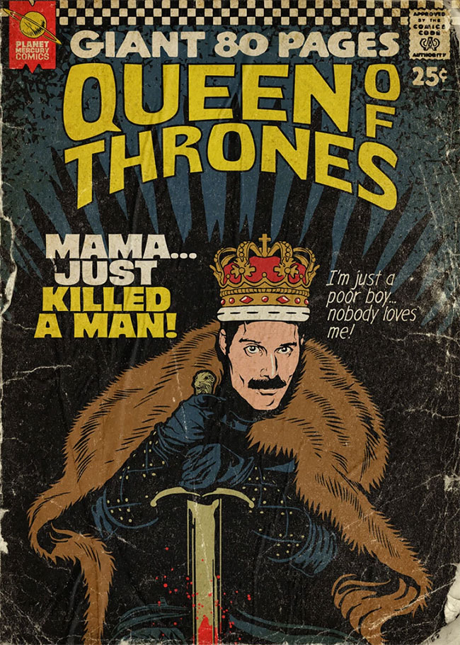 Poslednja u nizu takvih posveta je kolekcija naslovnih strana izmišljenog stripa “Planet Queen” čiji je glavni junak, naravno, Fredi Merkjuri.