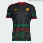 Domaći dres je zlatno žute boje s horizontalnim prugama u zelenoj, crvenoj i crnoj, dok je gostujući crn i ilustruje jamajčanski identitet kroz dizajn koji uključuje reference na kasete, ploče i zvučne talase.