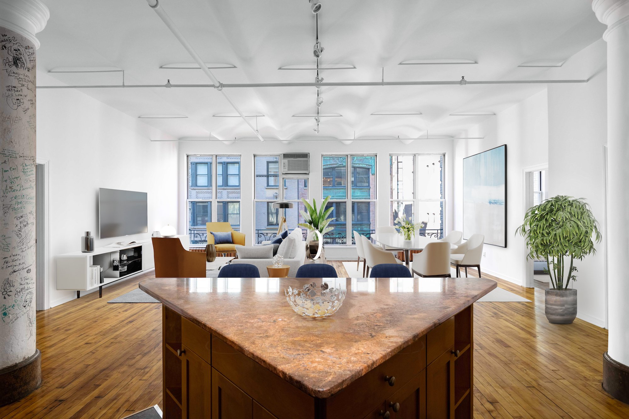 Pogledajte stub od livenog gvožđa u ovom potkrovlju u njujorškom Flatironu. Potpisali su ga – Kiss, Kurt Kobejn, Sara Meklahan, Robert Plant, Džoan Džet, The Wailers, Fibi Snou, Slayer i mnogi poznati muzičari. Ovaj stan na dva nivoa u ulici West 17th Street 14 prvobitno su posedovali Joko i Dejvid Tan, novinar i fotograf. Tokom 70-ih, 80-ih i 90-ih, David je napravio brojne fotografije rok zvezda upravo u ovom potkrovlju. Sada stan prodaje, a košta “tričavih” 2.800.000 dolata.