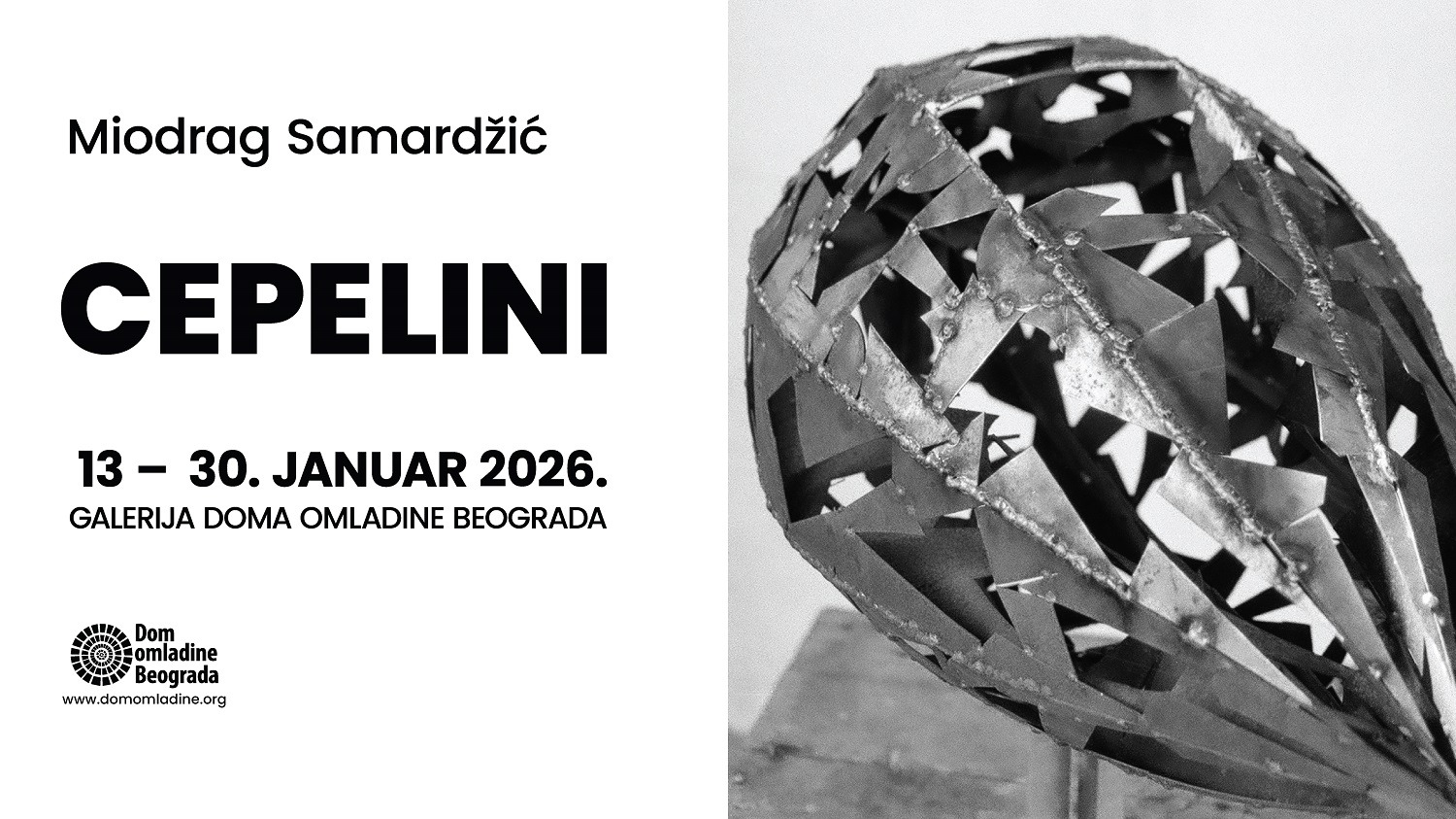 Izložba “Cepelini” Miodraga Samardžića biće otvorena od 13. do 30. januara u Galeriji Doma omladine Beograda.