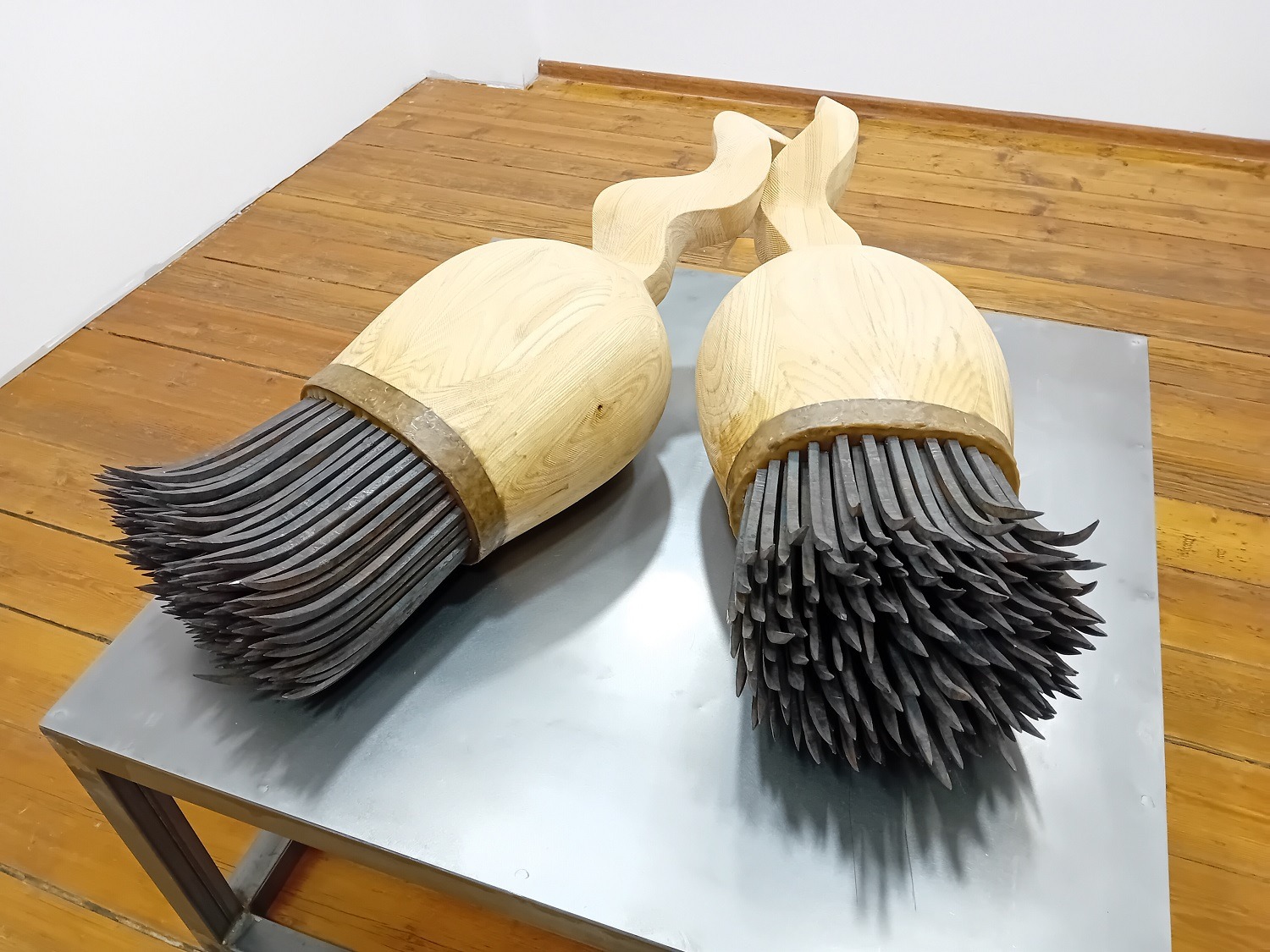 – Skulpture “Četke” su istraživanje u pogledu različitosti materijala, tvrdoće i mekoće, spojenih u jednu kompozicionu celinu biomorfnog oblika. Moj doživljaj dizajniranja predmeta sa kojima sam se igrao kao dete i davao im višestruku namenu. Sa skulpturama četke i gedžeti želim da naglasim važnost dečije igre kao takve u razvojnom procesu individue