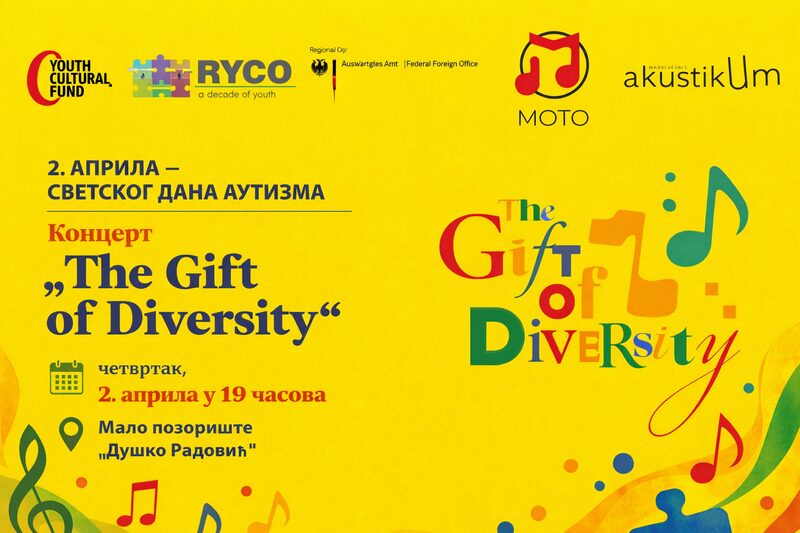 Koncert “The Gift of Diversity”, koji se organizuje povodom obeležavanja Svetskog dana autizma, će biti održan u četvrtak 2. aprila u 19 časova, u Malom pozorištu “Duško Radović”.