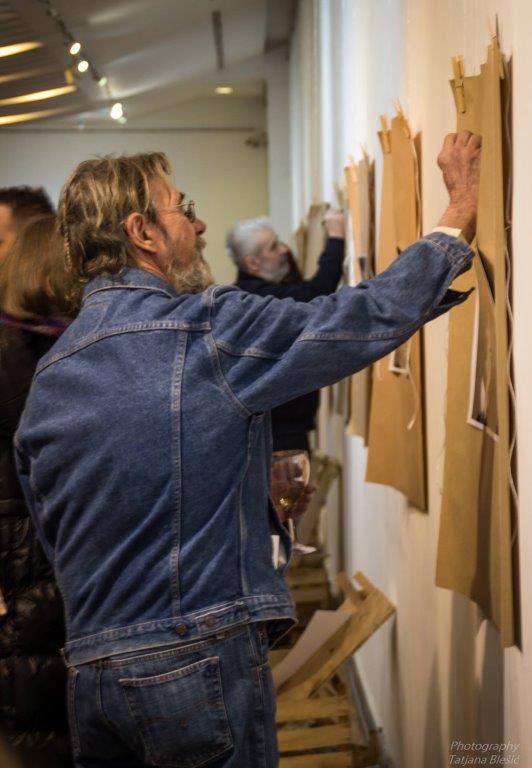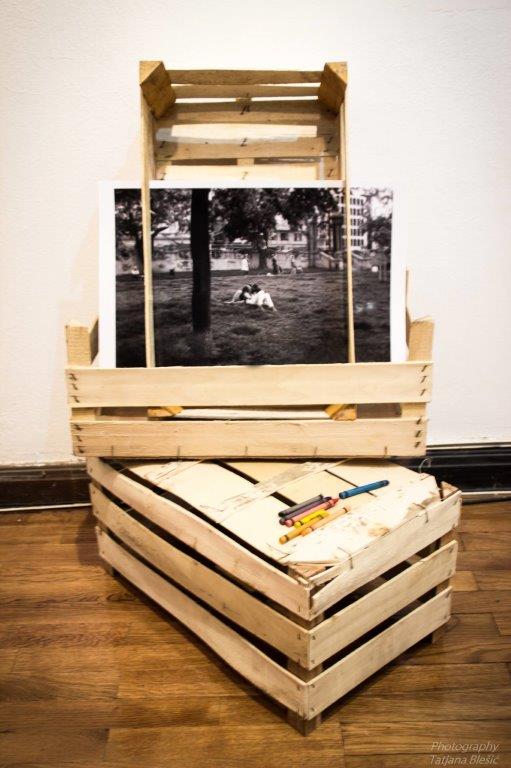 I… da čovek ne poveruje, niko od njih nije buljio u mobilne telefone, niti pravio selfije. Valjda ih je, a ponavljam da su bili fini i normalni, bilo sramota da to čine pored crno-belih fotografija sa pričama koje su toliko živopisne da bi im boja, zapravo, bila samo višak. Kao što bi uz njih bio preteran i svaki drugi koncept osim ovog, minimalističkog, sa fotkama nehajno nalepljenim na pak-papir ili postavljenim u drvene gajbice na podu galerije. Jer… kako uopšte ulepšati ljubav. Možda samo uz vino, koje je donelo dodir urbane boemije u ovaj jedinstveni beogradski galerijski prostor.