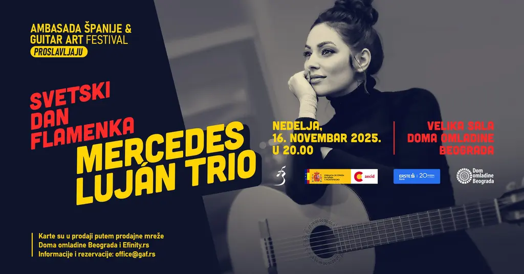 Povodom obeležavanja Nacionalnog dana flamenka, Ambasada Kraljevine Španije u Srbiji i Guitar Art Festival najavljuju koncert jedne od najautentičnijih savremenih flamenko umetnica – Mercedes Luhan (Luján), gitaristkinje i pevačice čije izvođenje predstavlja vrhunac španske muzičke tradicije.