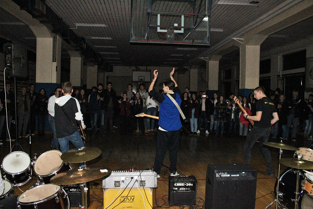 Na ovom nastupu učestvovala su tri benda u čijem sastavu je petnaestak srednjoškolaca. Koncert je održan u fiskulturnoj sali gimnazije pred oko 120 gledalaca (učenika, profesora, roditelja) i trajao je oko sat i 15 minuta.