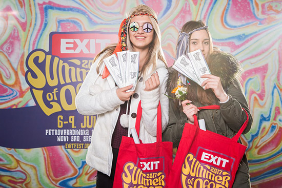 Najbrži fanovi, koji su čekali u redu već od 8 časova, dobili su na poklon prve EXIT Summer of Love 2017 majice, cegere, bedževe, postere i EXIT magične kartice, a ostvarili su i pravo na poklon cenu ulaznice za EXIT sa uštedom od čak 65%.