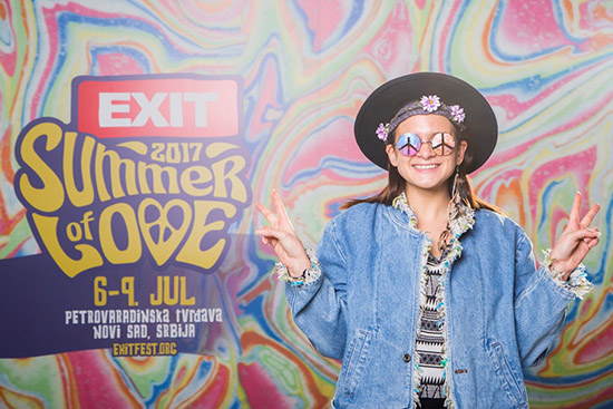 EXIT festival biće održan od 6. do 9. jula 2017. na Petrovaradinskoj tvrđavi u Novom Sadu i biće u znaku proslave 50 godina od čuvenog “Leta ljubavi 1967”, kada je nastao revolucionarni hipi pokret koji je zauvek promenio svet, boreći se za mir, slobodu govora, ljudska prava, društvenu, rasnu i polnu ravopravnost.
