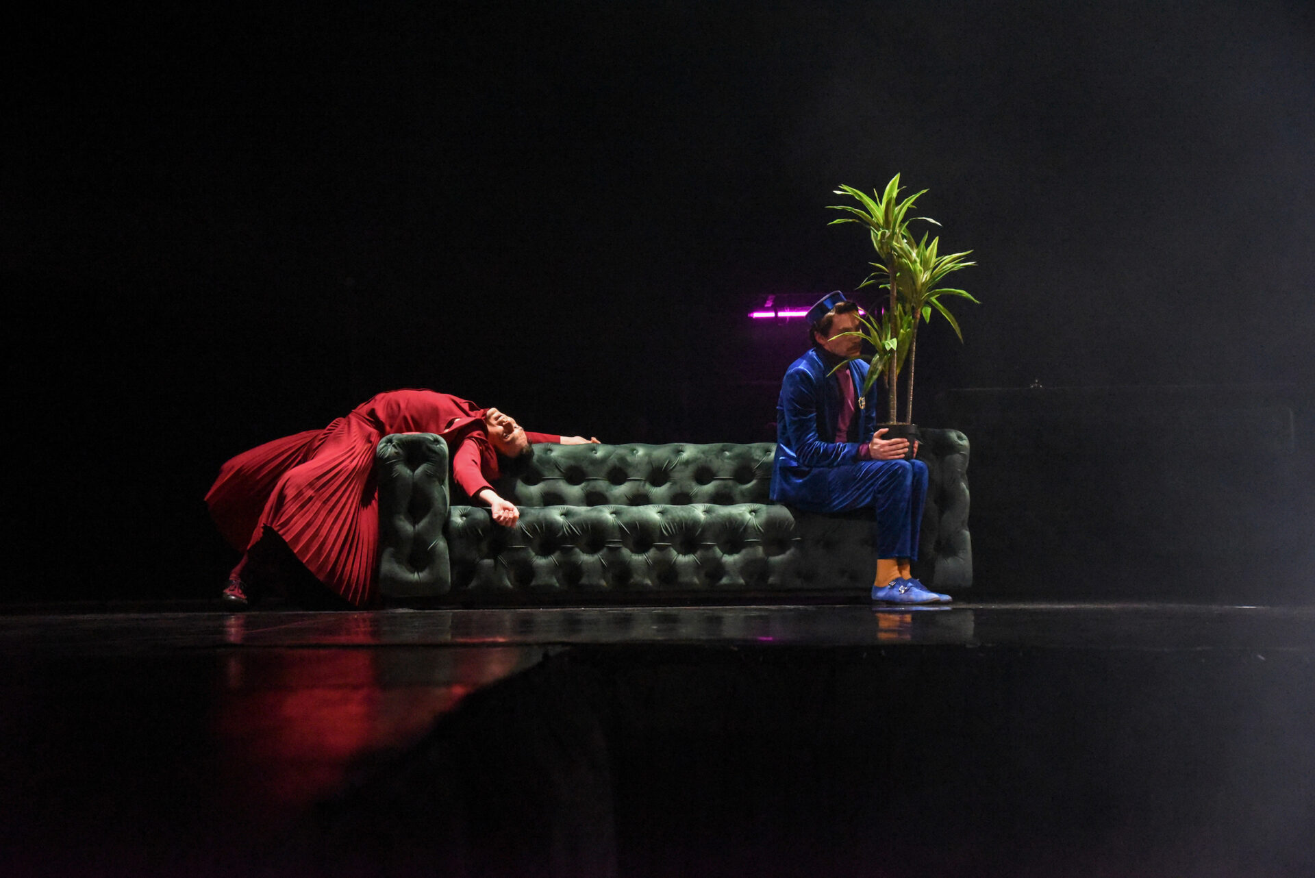 Predstavu su maestralno odigrali glavni protagonisti Mojca Majcen, Ognjen Vučinić, Branko Mitrović i Jakša Filipovac, uz podršku ansmbla Plesnog teatra Gospođe koju čine Nada Kecman, Mira Ivančević, Vesna Stipišić, Katarina Stojkov Slijepčević, Marina Maraš, Milica Bezmarević i Biljana Knežević.