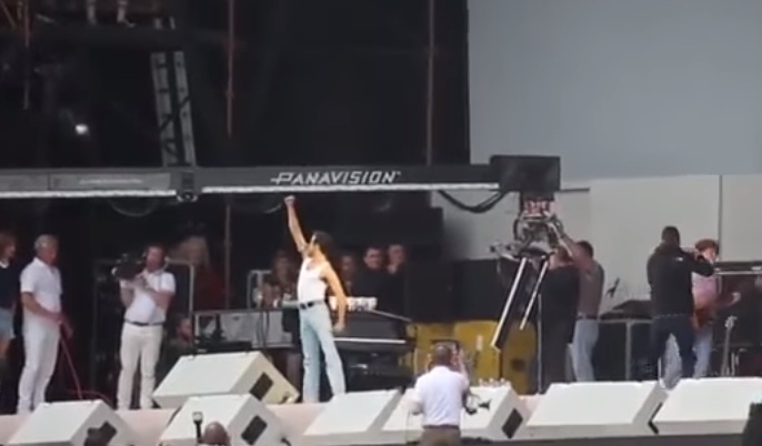 Na snimku koji je, skrivajući mobilni telefon, napravio neimenovani fan, vide se i ostali akteri – Gvajlim Li kao Brajan Mej, Ben Hardi kao Rodžer Tejlor i Džozef Macelo kao Džon Dikon.