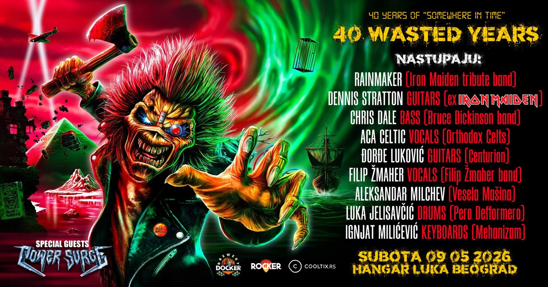 Zbog velikog interesovanja publike, koncert “40 Wasted Years”, posvećen obeležavanju 40 godina kultnog albuma “Somewhere in Time” benda Iron Maiden, premešten je u Hangar Luke Beograd i zakazan za subotu, 9. maja 2026. godine. Ova promena dolazi kao odgovor na veliku potražnju, čime se obezbeđuje veći prostor i još snažnije koncertno iskustvo za sve ljubitelje heavy metala.