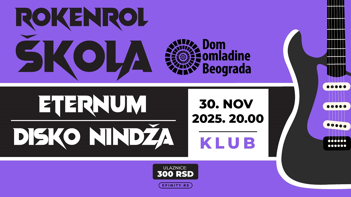 Na sedmoj “Rokenrol školi” u 2025. godini, u nedelju 30. novembra od 20 časova u Klubu DOB, predstaviće se sastavi Eternum iz Kraljeva i Disko nindža iz Desete beogradske gimnazije.