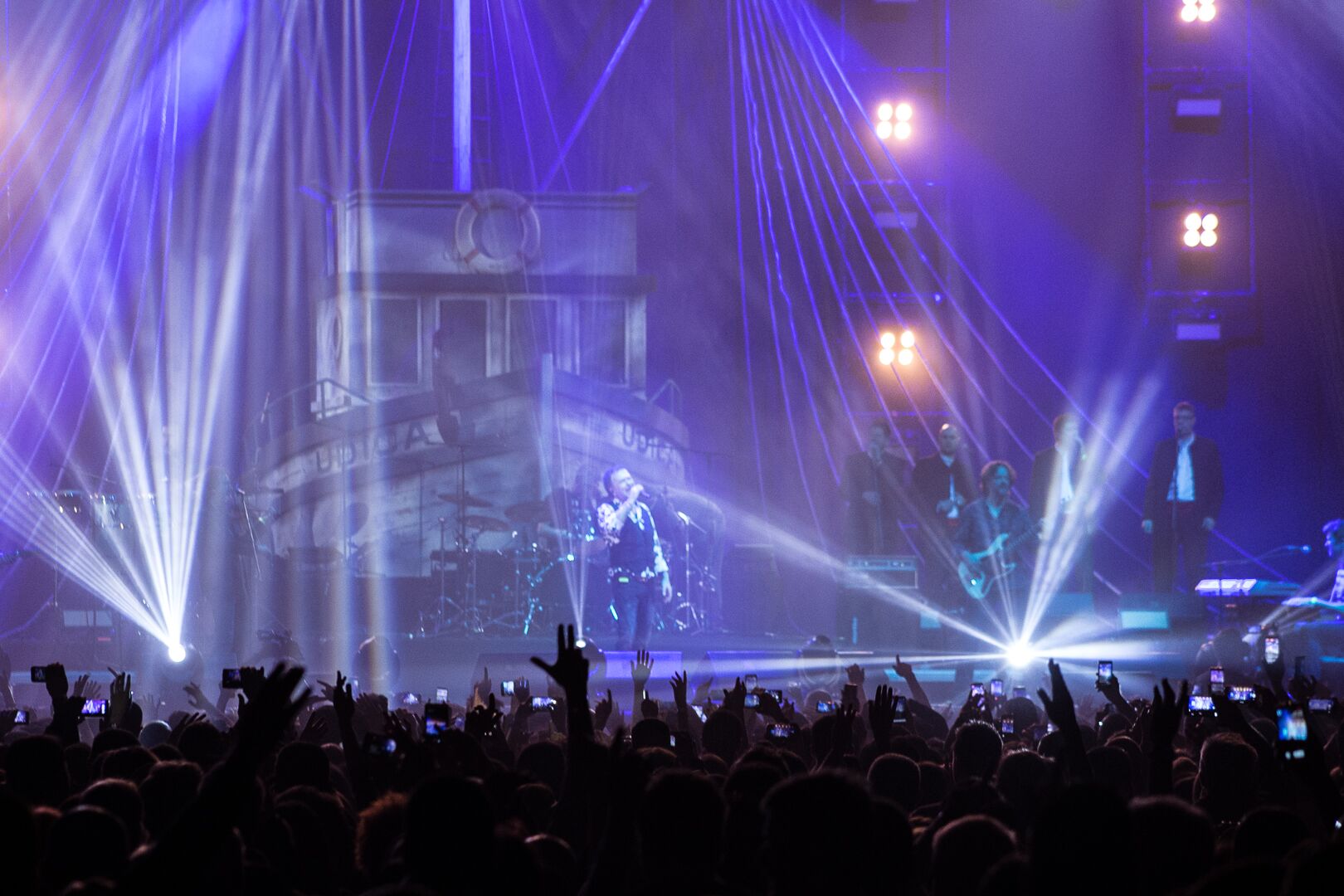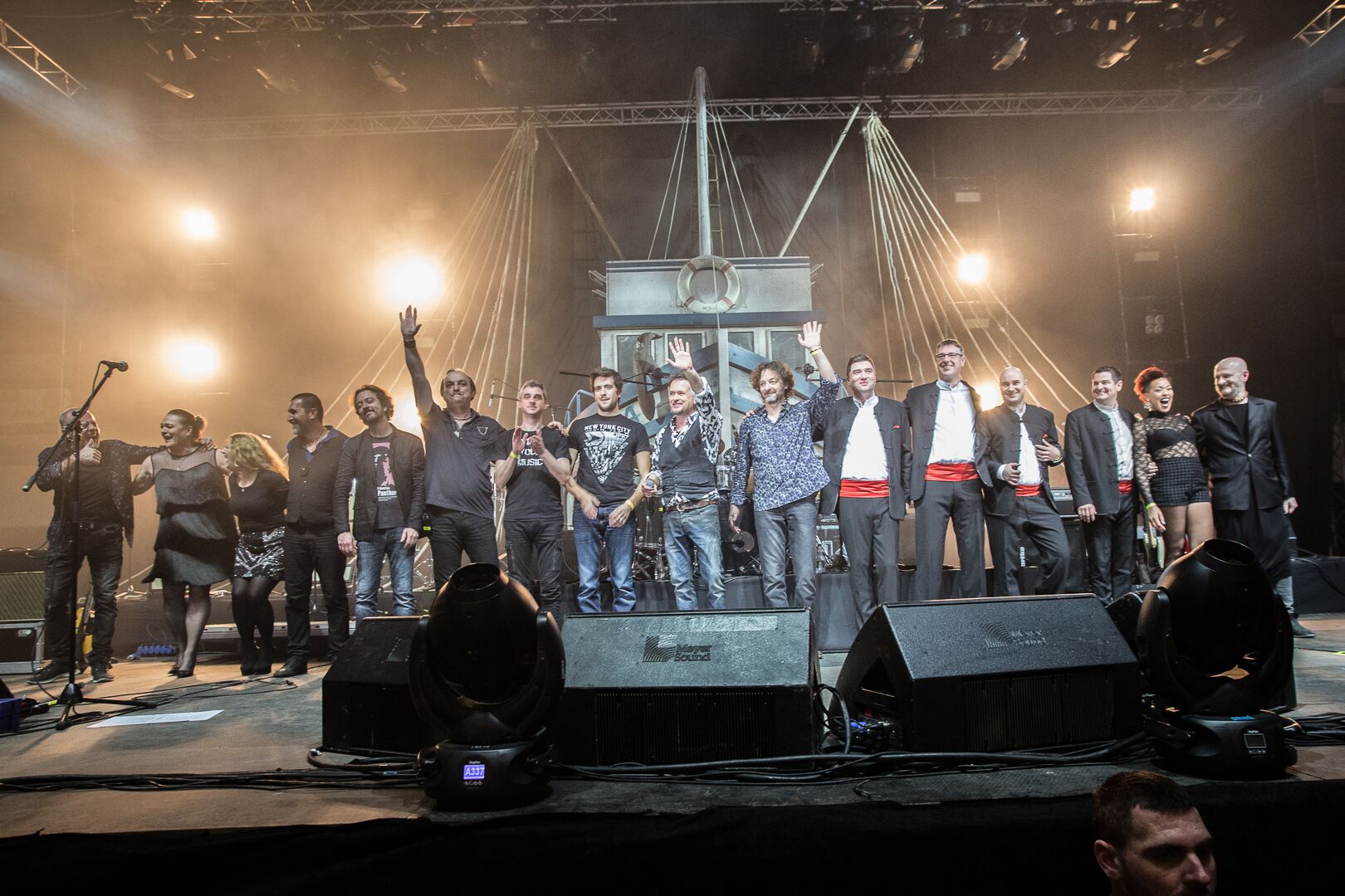 U prvoj polovini koncerta, kog je krasila impozantna scenografija bine sa maketom ribarskog broda “Udica”, Džiboni je proveo publiku kroz važne momente svoje karijere, kombinujući stare klasike i pesme sa aktuelnog albuma “Familija” (koji je objavio sa Oliverom Dragojevićem).