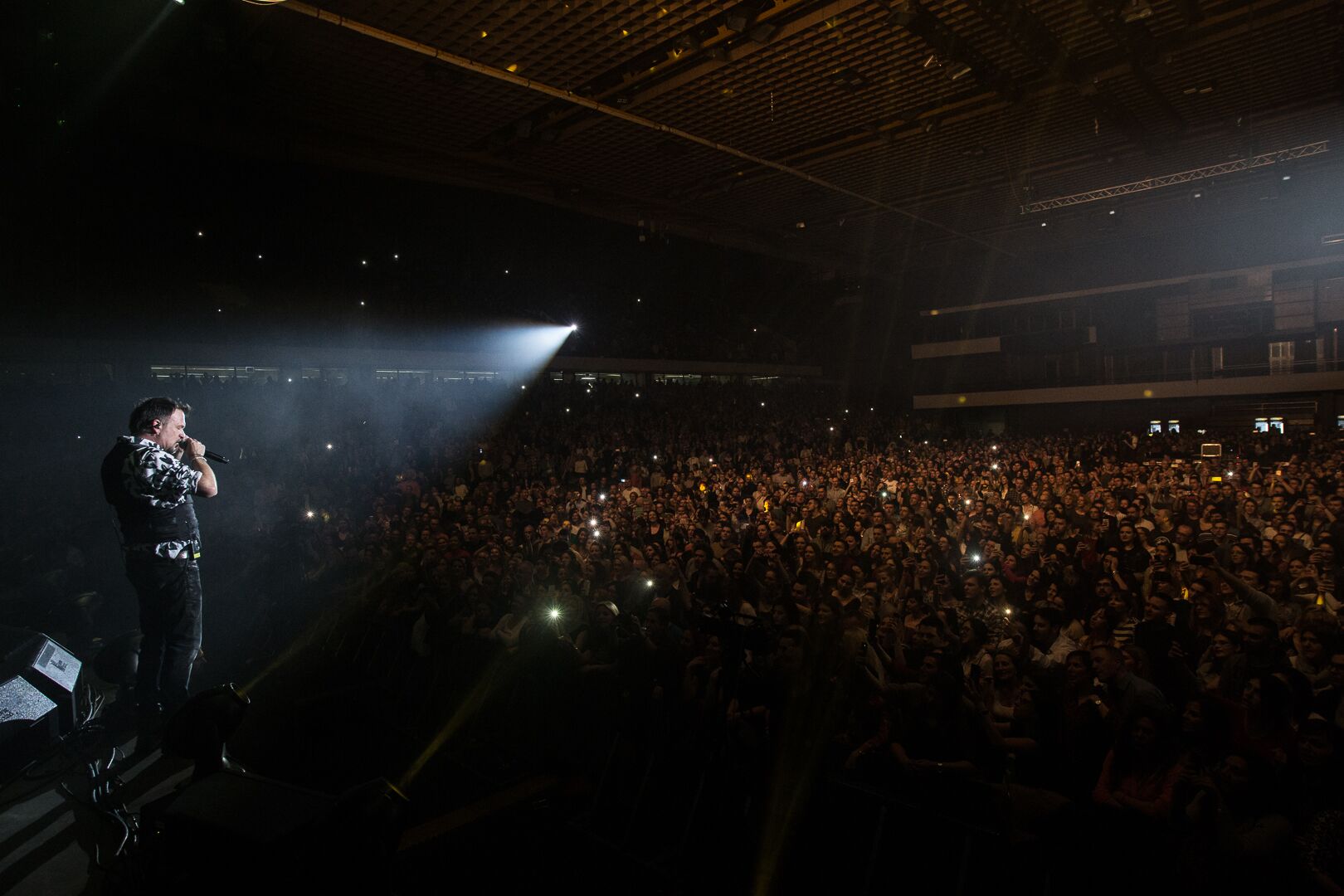 I pre nego što je otpevao jedan stih pesme “Sreća”, kojom je otvorio skoro tročasovni koncert, Džiboni je dočekan ovacijama publike.