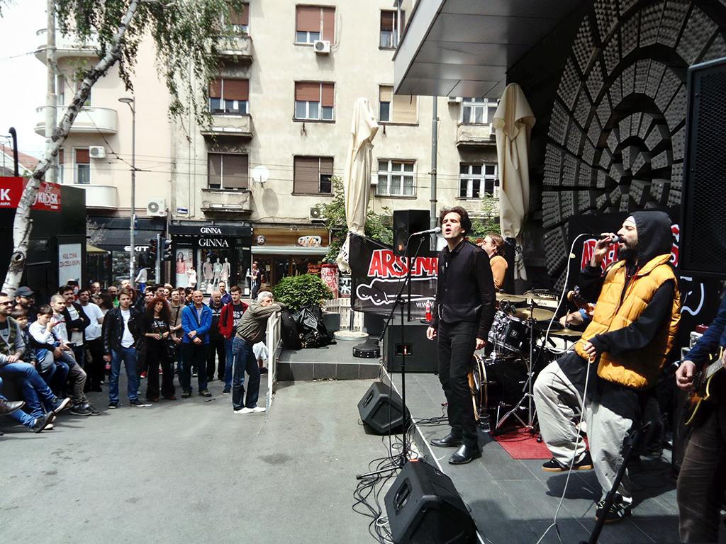 Kanda kodža i Nebojša (KKN) pojačani Hornsman Coyoteom i Epilog danas popodne na Zidiću Doma omladine Beograda promovisali su Arsenal Fest svirkom za fanove i prolaznike.