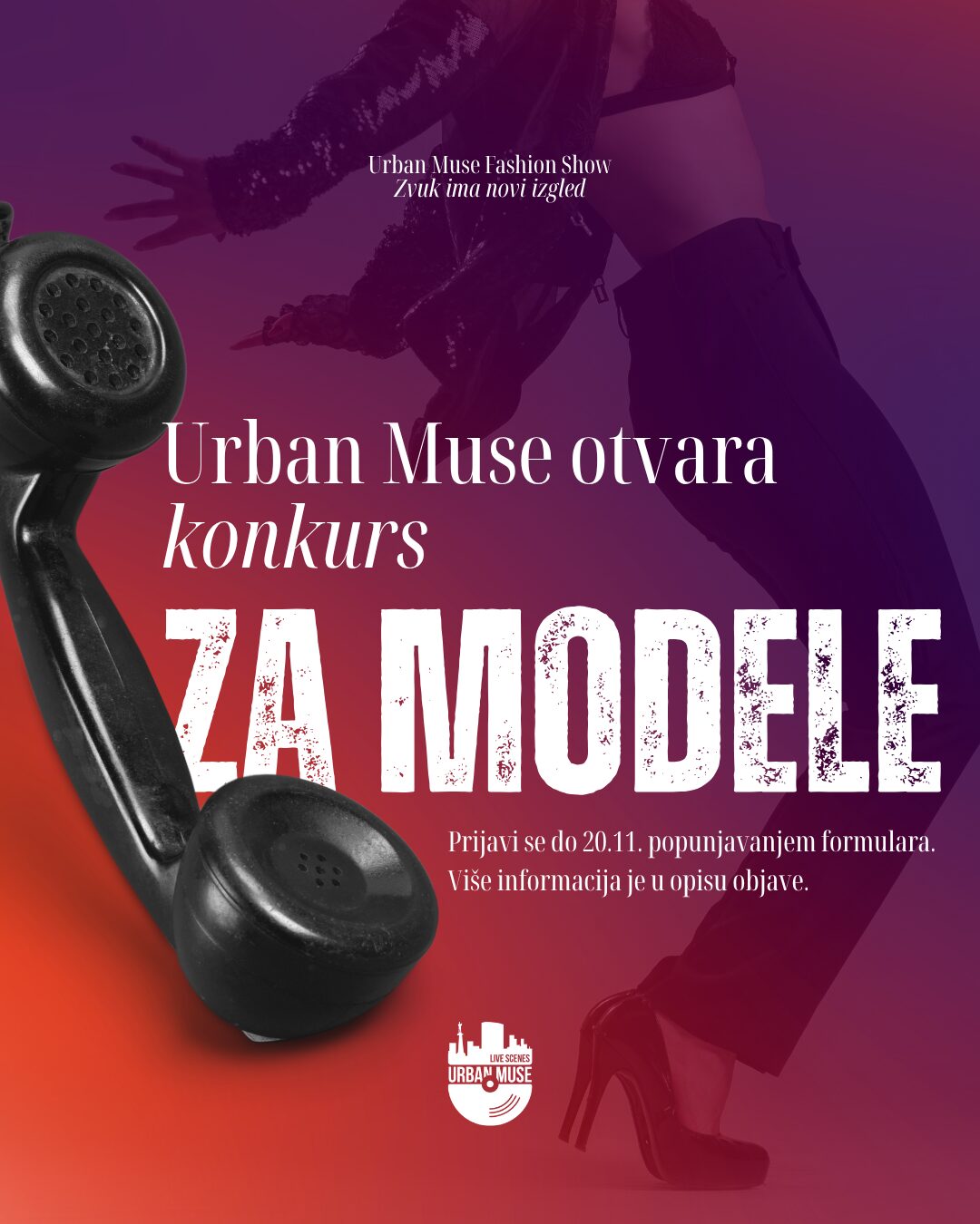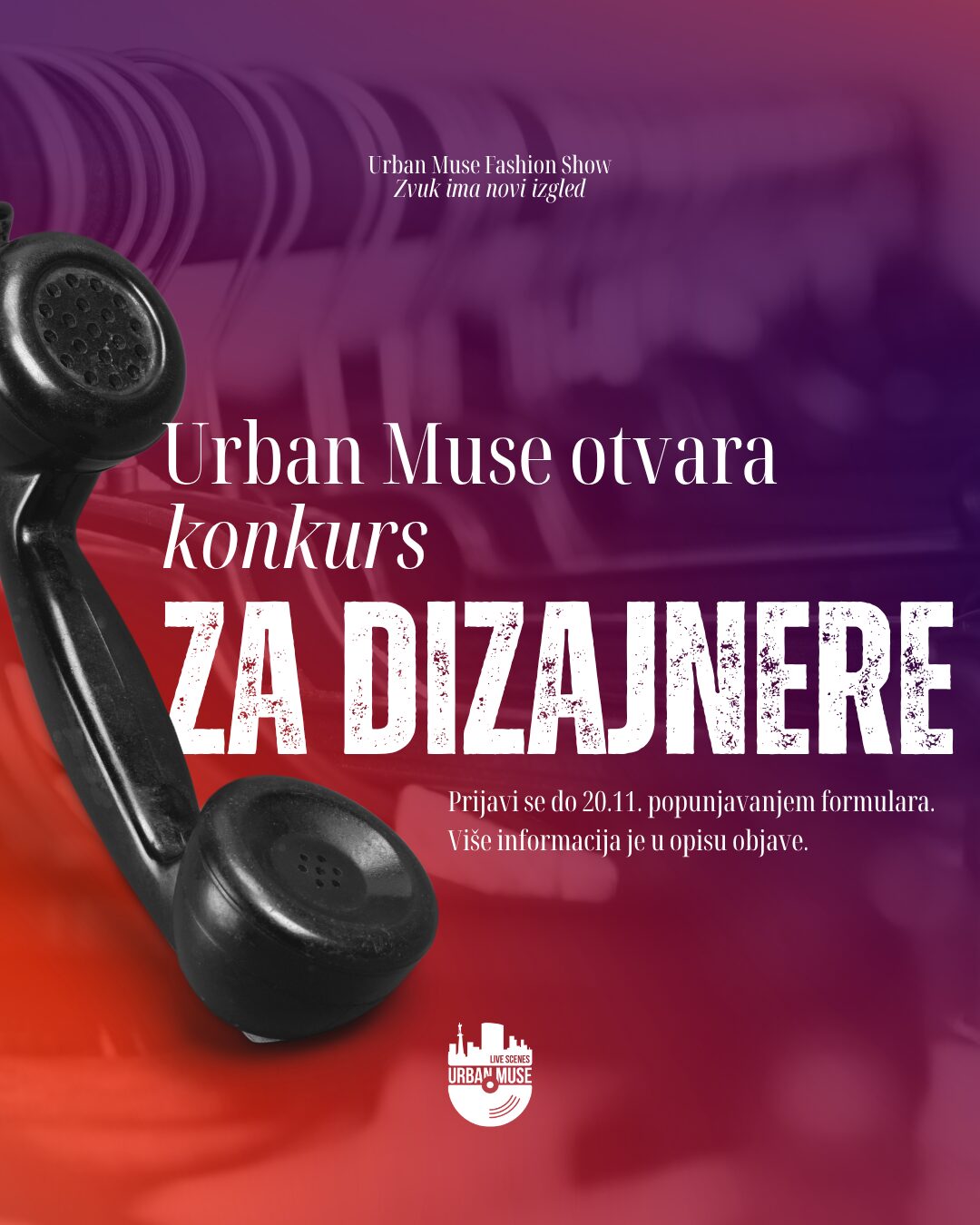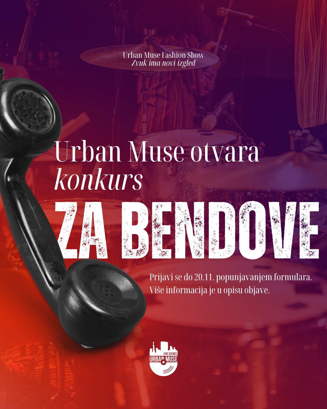 Svi konkursi objavljeni su na zvaničnim kanalima Urban Muse – Live Scenes!, a kreativni tim festivala poziva rock zajednicu da učestvuje u stvaranju prvog domaćeg događaja koji na jedinstven način spaja modu i muziku.